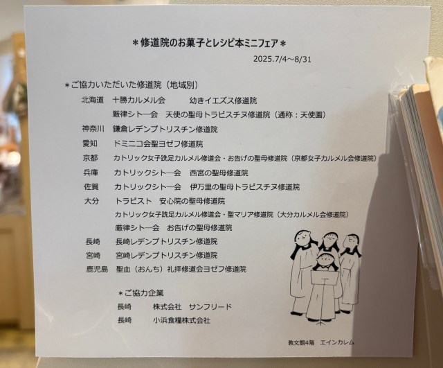 これは「修道院のお菓子とレシピ本ミニフェア」という企画のため。